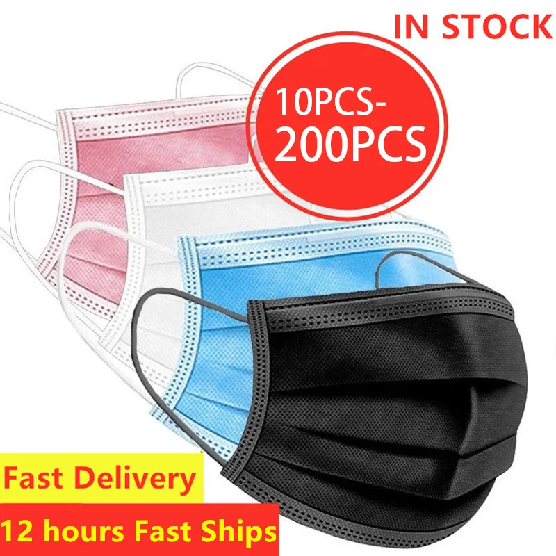 Name: 10/50/100/200 Uds máscaras desechables no tejida cara máscaras de capa de 3 capas filtro Anti polvo transpirable adultos máscara de boca negro en STOCK