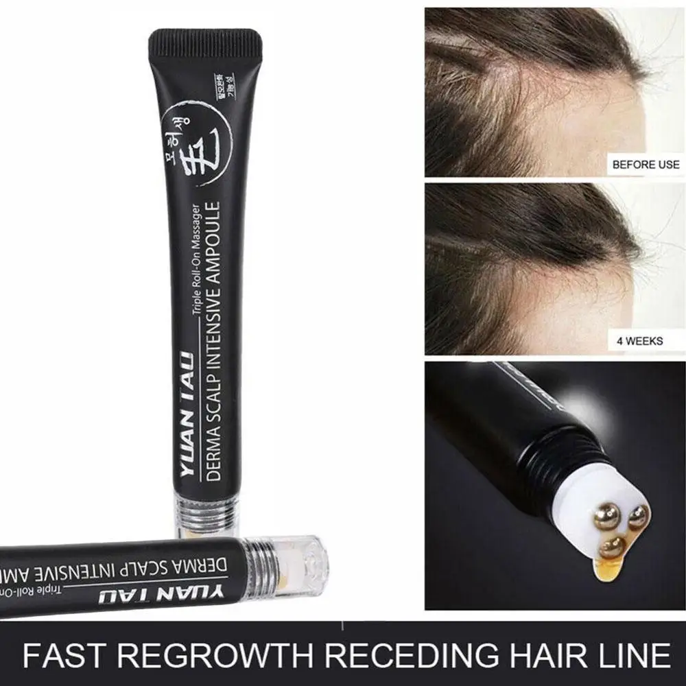 Name: Suero de crecimiento de línea de cabello de 20ml, suero para el cuero cabelludo, ampolla intensa, masajeador de Triple rollo, esencia rápida para pérdida de cabello